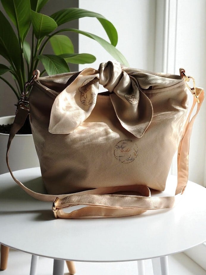 ふろしきを結ぶ所作から この形に着想した、結び目がアクセントのショルダーバッグです。