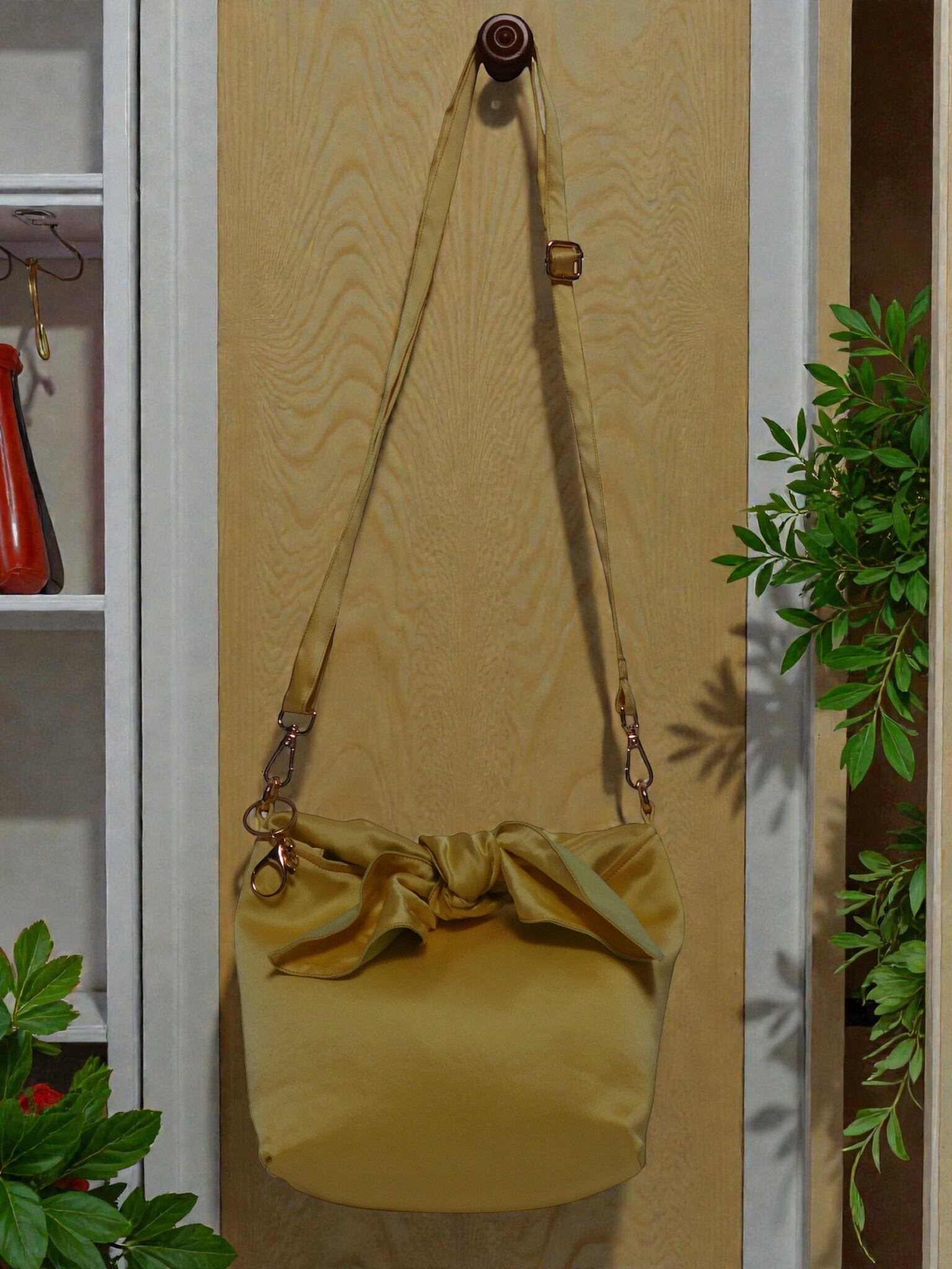 ふろしきを結ぶ所作から この形に着想した、結び目がアクセントのショルダーバッグです。