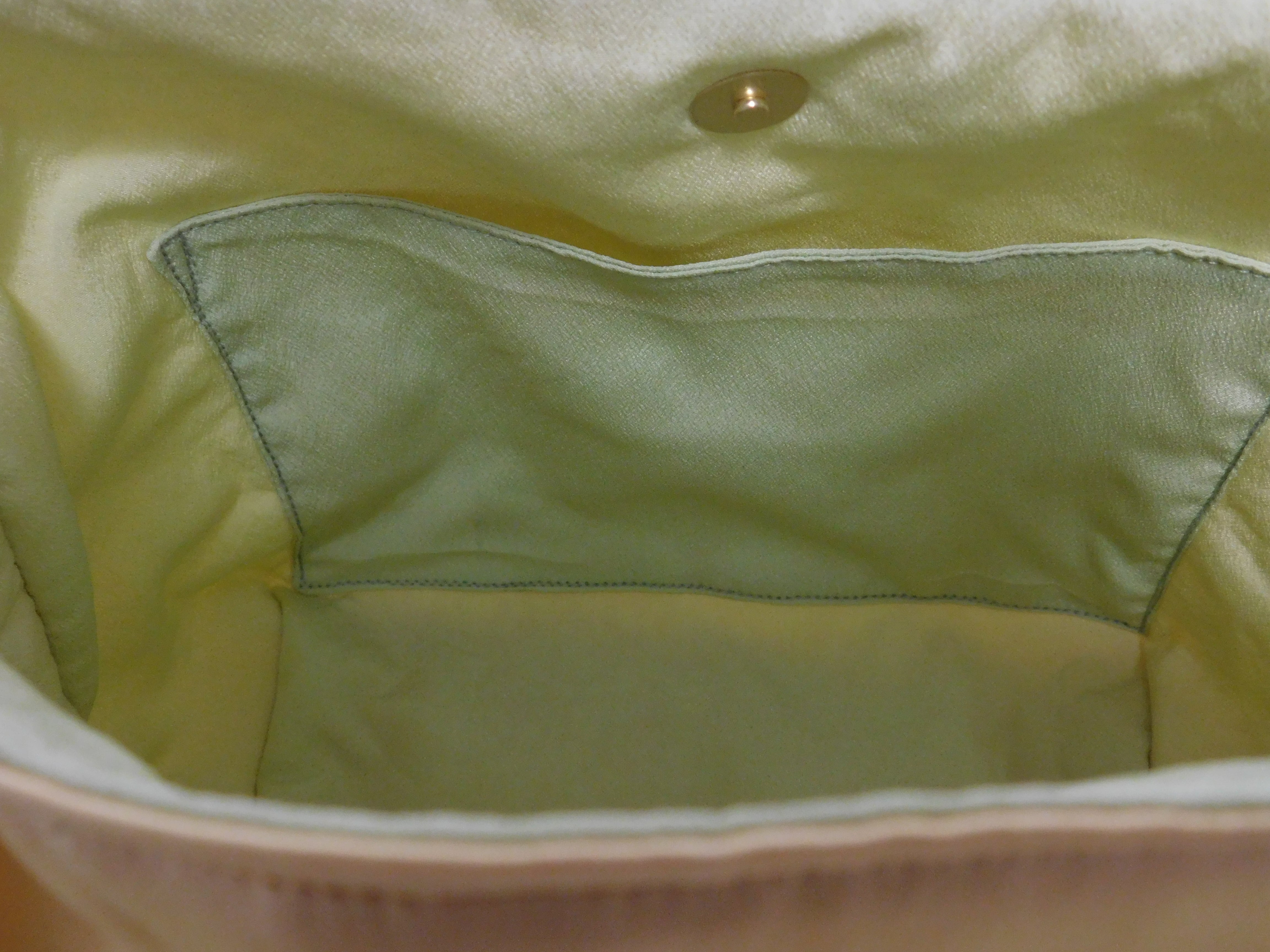 裏地は薄い鶯色?黄緑?の着物裏地生地を合わせ、普段着にも ちょっとしたパーテイーにも使っていただける印象に。