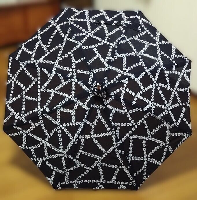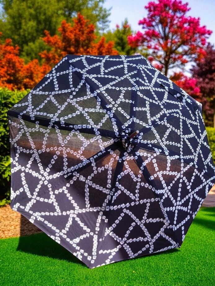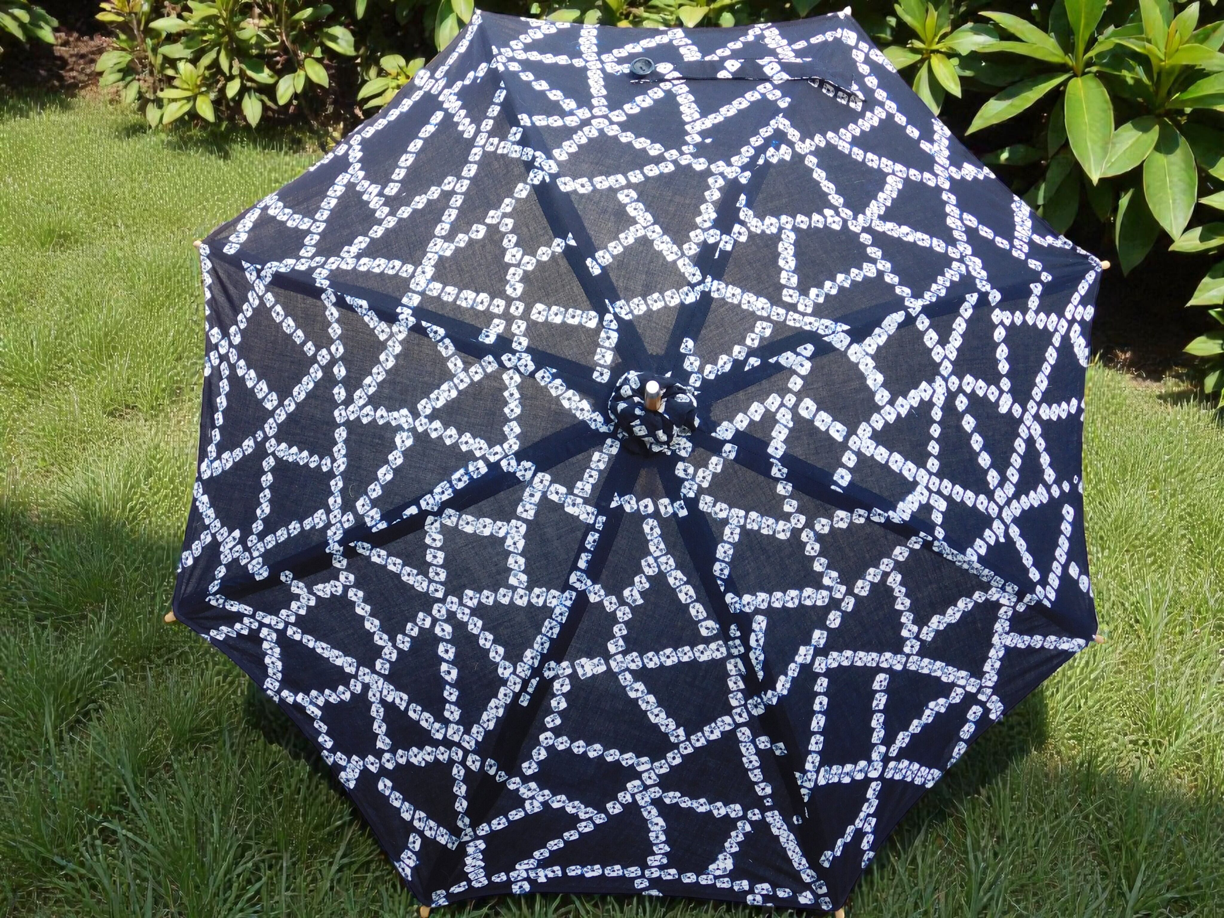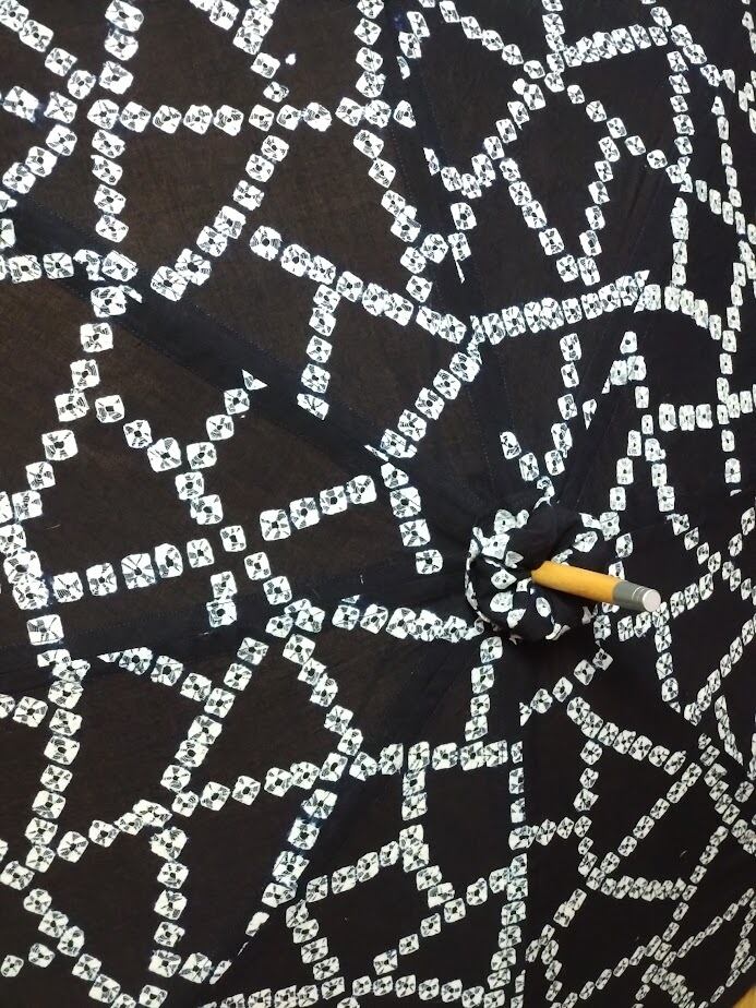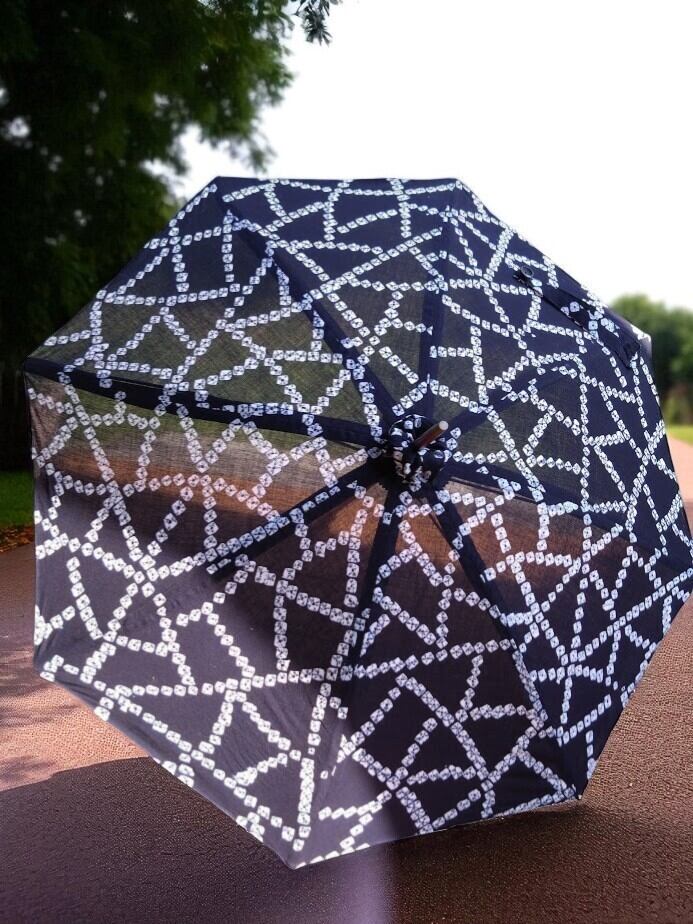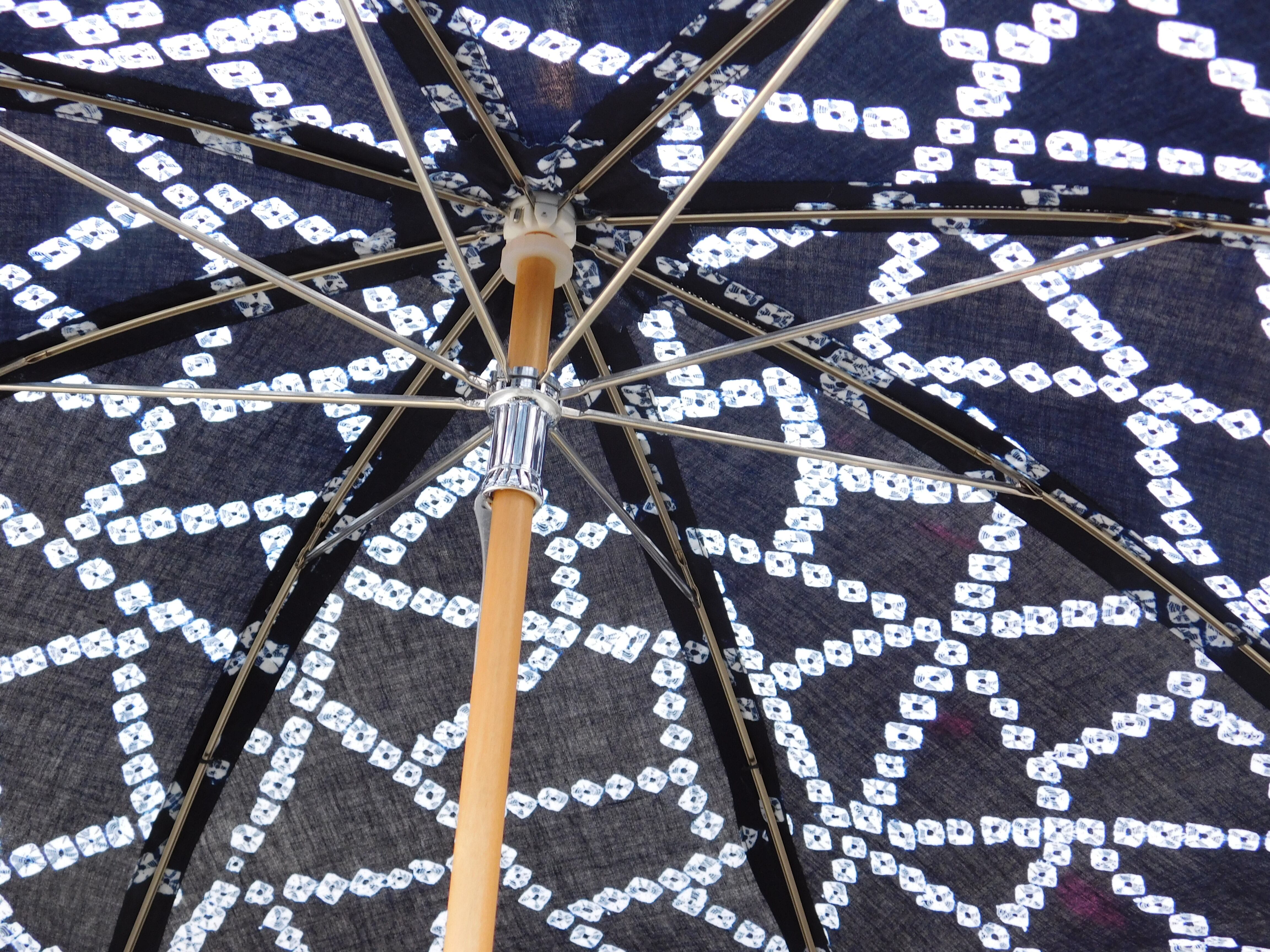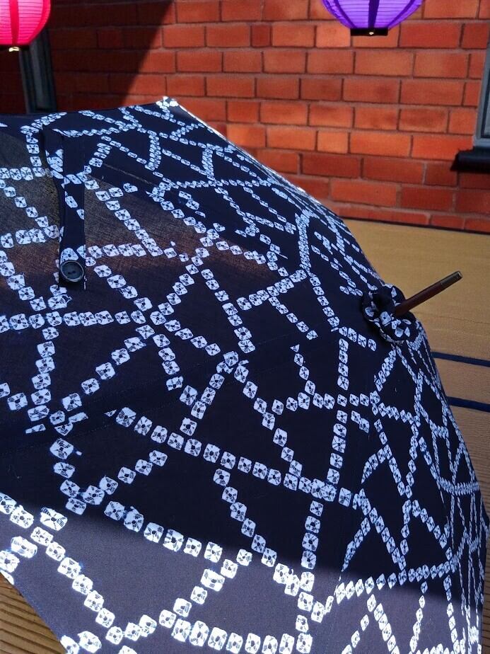 藍染め絞り柄の浴衣を日傘へと仕立てました。