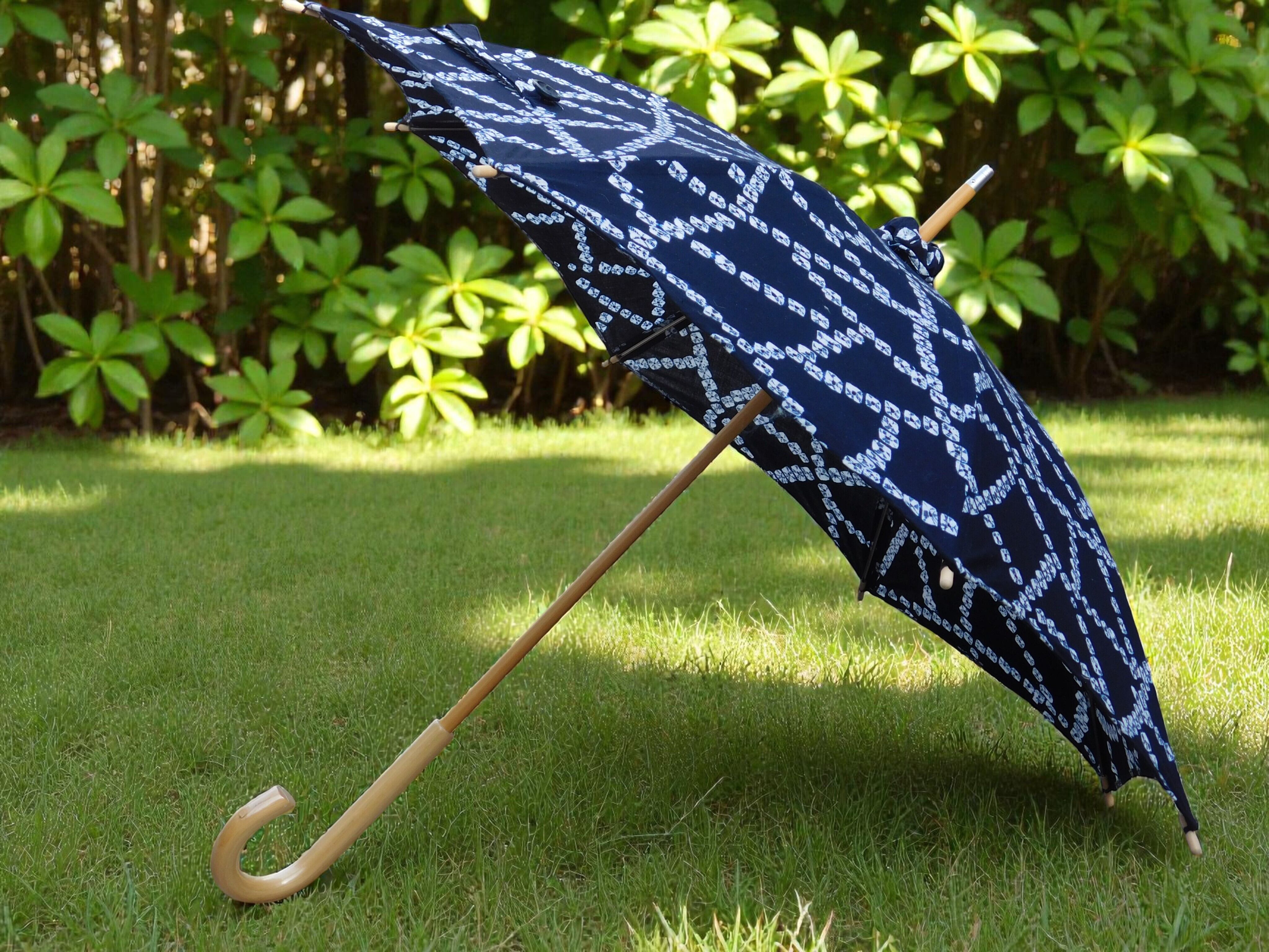 《藍の涼》絞り柄 浴衣リメイク日傘・一点もの