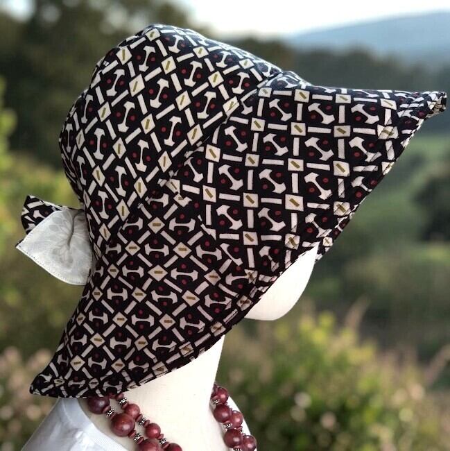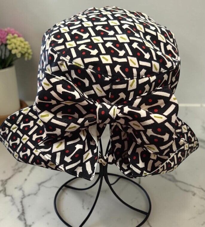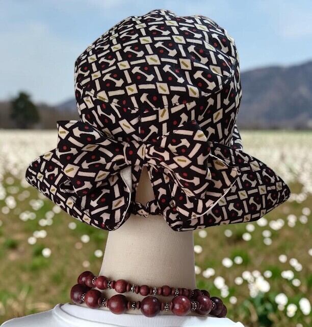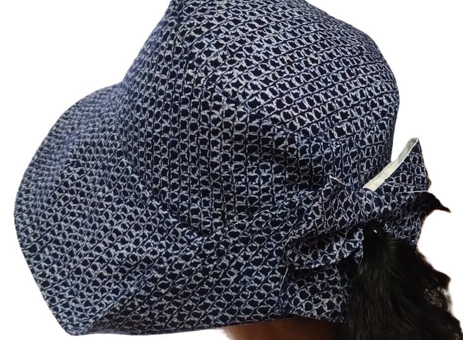 正絹 小紋の着物から形を変えた2WAYつば広帽子 ~後ろリボン・首元まで日よけ~
